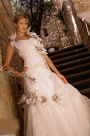 Unser Angebot reicht vom schlichten cremefarbenen über das klassisch weiße bis zum glamourösem farbigen Brautkleid. Unsere Kleider werden aus den edelsten Stoffen, wie Seide, Taft und Spitze, gefertigt.